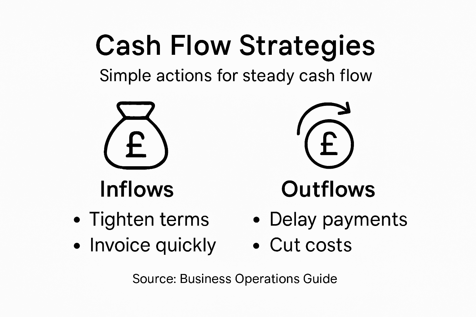 | Implement Practical Strategies | Accelerate cash inflows and delay non-essential payments to improve cash management, while also maintaining a cash reserve for stability. |
