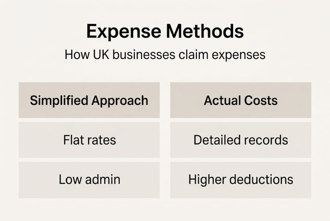 HMRC offers two ways to claim certain expenses: simplified flat rates or actual costs. Choosing the right method can save you significant time or money, depending on your circumstances. The decision isn't permanent, you can switch annually, but understanding the trade offs helps you optimise your claims.